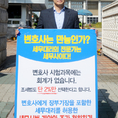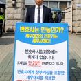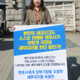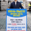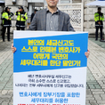 (조세금융신문=김용진 기자)백승호 세무사가 29일 오전 국회 정문 앞에서 변호사에게 장부 기장을 포함한 세무대리를 허용한 세무사법 개악안 철회를 주장하며 1인시위를 하고 있다.