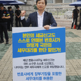 (조세금융신문=김용진 기자)이창식 한국세무사고시회 총무 부회장이 16일 오전 국회 정문 앞에서 변호사에게 장부 기장을 포함한 세무대리를 허용한 세무사법 개악안 철회 하라는 1인 시위를 하고 있다.