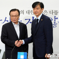 (조세금융신문=김용진 기자)이해찬 더불어민주당 대표가 17일 오전 국회 더불어민주당을 예방한 조국 신임 법무부 장관과 인사를 하고 있다.