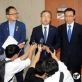 (조세금융신문=김용진 기자)더불어민주당 법사위원들이 2일 오전 국회 정론관에서 조국 법무부 장관 후보자 인사 청문회 관련 기자회견을 마친 후 취재진 질문에 답하고 있다