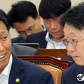 (조세금융신문=김용진 기자)김영문 관세청장과 김현준 국세청장이 22일 오전 국회에서 열린 기획재정위원회 전체회의에서 대화를 하고 있다.