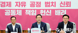 (조세금융신문=김용진 기자) 김태년 더불어민주당 원내대표가 28일 오전 국회에서 열린 원내대책회의에서 모두 발언을 하고 있다. 김 원내대표는 이날 원내대책회의에서 "통합당의 고의적 시간끌기로 인해 상임위에서 핵심 법안이 협의조차 되지 않고 있다. 특히 부동산 입법을 심사하는 국토교통위원회, 기획재정위원회, 법제사법위원회가 심각하다"고 말했다 [조세금융신문(tfmedia.co.kr), 무단전재 및 재배포 금지]
