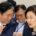 (조세금융신문=김용진 기자)14일 오전 국회 산업통상자원중소벤처기업위원회 전체회의에서 성윤모 산업통상자원부 장관과 박영선 중소벤처기업부 장관이 대화를 하고 있다.