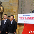 (조세금융신문=김용진 기자)황교안 자유한국당 대표가 14일 오후 국회 본관 중앙홀에서 오늘을 이기고 내일로 나아가자는 내용의 대국민 담화문을 발표하고 있다.