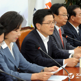 (조세금융신문=김용진 기자)황교안 자유한국당 대표가 21일 오전 국회에서 열린 당 대표 및 최고위원-중진의원 연석회의에서 모두 발언을 하고 있다. 황 대표는 이날 당 대표 및 최고위원-중진의원 연석회의에서 "이번 조국 사태에 대해 결국 문 대통령이 책임져야 하고, "조국 후보자는 애당초 공직 맡을 자격이 없는 무자격자였다"고 말했다.
