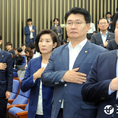 (조세금융신문=김용진 기자)나경원 자유한국당 원내대표와 의원들이 18일 오전 국회에서 열린 정책의원총회에서 국민의례를 하고 있다.
