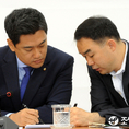 (조세금융신문=김용진 기자)오신환 바른미래당 원내대표와 채이배 의원이 18일 오전 국회에서 열린 원내대책회의에서 대화를 하고 있다.