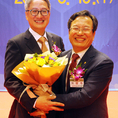 (조세금융신문=김용진 기자) 19일 중부지방세무사회 정기총회를 통해 당선된 유영조 신임 중부지방세무사회장이 이금주 전 회장으로부터 회기를 넘겨받아 힘차게 흔들고 있다.