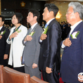 (조세금융신문=김용진 기자)문희상 국회의장과 각 당 대표, 원내대표들이 국회에서 열린 제71주년 국회개원기념식에서 국기에 대한 경례를 하고 있다.