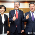 (조세금융신문=김용진 기자)원경희 한국세무사회 회장 후보가 31일 오후 한국세무사회 회장 후보 기호 추점에서1번을 들어 보이며 지지를 호소하고 있다.(왼쪽부터)고은경 부회장 후보 , 원경희 한국세무사회 회장 후보, 장운길 부회장 후보