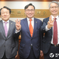 (조세금융신문=김용진 기자)31일 오후 한국세무사회 회관에서 열린 한국세무사회 회장 후보로 출마한 후보들이 자신의 기호 번호를 들어 보이며 지지를 호소하고 있다.(왼쪽부터)원경희, 이창규, 김상철 한국세무사회 회장 후보.