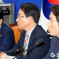 (조세금융신문=김용진 기자)이인영 더불어민주당 원내대표가 이원욱 원내수석 부대표와 21일 오전 국회에서 열린 원내대책회의에서 대화하고 있다.