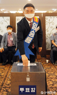 (조세금융신문=김용진 기자) 서울지방세무사회 회장 선거가 실시된 24일 오전 서울 서초 더바인에 마련된 투표소에서 유권자가 투표를 하고 있다. 투표는 코로나19 확산 방지를 위해 투표장에 손소독제와 비니루 장갑을 준비하고, 24일과 25일 양일간에 걸쳐 진행된다. [조세금융신문(tfmedia.co.kr), 무단전재 및 재배포 금지]