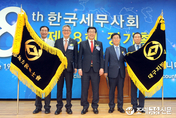 (조세금융신문=김용진 기자) 유영조 중부지방세무사회 회장이 30일 오후 한국세무사회 회관에서 열린 제58회 한국세무사회 정기총회에서 원경희 한국세무사회 회장으로부터 우수지방세무사회장상을 수상 한 후 수상자들과 기념 촬영을 하고 있다. [조세금융신문(tfmedia.co.kr), 무단전재 및 재배포 금지]