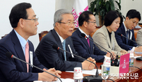 (조세금융신문=김용진 기자) 이해찬 더불어민주당 대표가 29일 오전 국회에서 열린 최고위원회 회의에서 발언을 하고 있다. 옆자리에 앉은 김태년 원내대표가 깊은 생각에 잠겨있다. [조세금융신문(tfmedia.co.kr), 무단전재 및 재배포 금지]