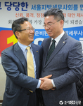 (조세금융신문=김용진 기자)임승룡 서울지방세무사회 회장 후보(오른쪽)와 이금주 인천지방세무사회 회장(왼쪽)이 11일 오후 열린 선거사무소 개소식에서 포옹을 하며 대화를 하고 있다. [조세금융신문(tfmedia.co.kr), 무단전재 및 재배포 금지]