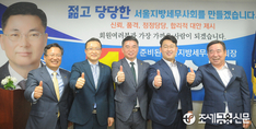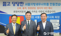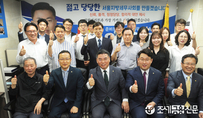 (조세금융신문=김용진 기자) 임승룡 서울지방세무사회 회장 후보가 11일 오후 열린 선거사무소 개소식에서 임채룡 서울지방세무사회 회장, 이금주 인천지방세무사회 회장과 함께 엄지척 하고 있다. [조세금융신문(tfmedia.co.kr), 무단전재 및 재배포 금지]
