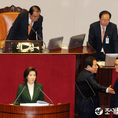 (조세금융신문=김용진 기자) 12일 오전 국회 본회의장에서 나경원 자유한국당 원내대표의 교섭단체 대표연설 중 문 대통령이 북한의 대변인이라는 표현에 대해 홍영표 더불어민주당 원내대표(오른쪽)가 강하게 항의하면서연설이 10분 이상 중단됐다.
