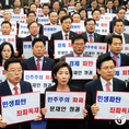 (조세금융신문=김용진 기자)황교안 자유한국당 대표와 나경원 원내대표, 지도부와 소속 의원들이 13일 오후 국회에서 '민생 경제파탄 문재인 정권', '민생파탄 좌파정권' 등의 손피켓을 들고 구호를 외치고 있다.