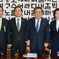 (조세금융신문=김용진 기자)19일 오전 국회 의장접견실에서 열린 여ㆍ야 원내대표 회동에서 문희상 국회 의장과 각 당 원내대표들이 손을 맞잡고 있다. (왼쪽부터) 윤소하 정의당 원내대표, 장병완 민주평화당 원내대표, 홍영표 더불어민주당 원내대표, 문희상 국회의장, 나경원 자유한국당 원내대표, 김관영 바른미래당 원내대표