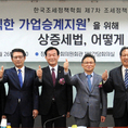 (조세금융신문=김용진 기자)김상철 한국세무사회 윤리위원장(오른쪽)과 원경희 세무사가 26일 오후 서울 올림픽공원 올림픽홀에서 열린 서울지방세무사회 회원 보수교육에서 오는 6월 치러질 한국세무사회 회장 선거에서 선전을 다짐하며 파이팅을 외치고 있다.