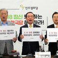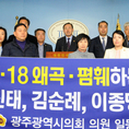 (조세금융신문=김용진 기자) 송갑석 더불어민주당 의원이 광주광역시의회 의원들과 14일 오후 국회 정론관에서 '5·18 왜곡·폄훼 김진태, 김순례, 이종명 자유한국당 의원 제명 요구 기자회견'을 하고 있다.