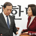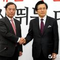 (조세금융신문=김용진 기자)15일 오전 국회에서 열린 황교안 전 국무총리(오른쪽)가 자유한국당 입당 환영식에서 김병준 자유한국당 비대위원장과 악수하고 있다.