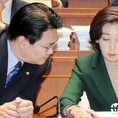 (조세금융신문=김용진 기자)나경원 자유한국당 원내대표와 정용기 정책위의장이 4일 오전 서울 국회에서 열린 긴급 자유한국당 의원총회에서 자료를 보며 대화를 하고 있다
