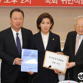 (조세금융신문=김용진 기자)나경원 자유한국당 원내대표가 7일 오후 국회에서 열린 '경제 비상상황 극복-무엇을 해야 하나' 경제단체 초청 긴급간담회에서 경제 단체 대표로 부터 경제정책 건의서를 전달 받고 있다. (왼쪽부터) 강호갑 한국중견기업연합회장, 박용만 대한상의회장, 나경원 자유한국당 원내대표, 손경식 한국경총 회장, 서승원 중기중앙회부회장