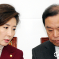 (조세금융신문=김용진 기자)김병준 자유한국당 비상대책위원장(오른쪽)과 나경원 신임 원내대표가 13일 오전 국회에서 열린 비상대책위원회 회의에서 의원들의 발언을 들으며 대화하고 있다