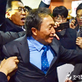 (조세금융신문=김용진 기자)18일 오전 국회 정론관에서 바른미래당 탈당 및 자유한국당 입당 기자회견을 마친 이학재 의원이 바른미래당 당직자들에게 국회 정보위원장직을 내려놓지 않고 자유한국당으로 간다며 거친 항의를 받고 있다