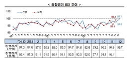 (조세금융신문=김종태 기자) 한국경제인협회(한경협)는 국내 기업들의 경기 전망이 3년 9개월 연속 부정적인 가운데 업종별 전망 차이가 벌어졌다는 분석을 내놨다. 한경협은 28일 매출액 기준 600대 기업을 대상으로 조사한 12월 기업경기실사지수(BSI) 전망치가 98.7로 집계됐다고 밝혔다. BSI가 기준치인 100보다 높으면 전월 대비 경기 전망이 긍정적이고 100보다 낮으면 부정적이라는 뜻이다. BSI 전망치는 2022년 4월(99.1)부터 45개월째 기준선 100을 하회하고 있다. 12월 경기 전망은 업종별로 엇갈렸다. 제조업 BSI는 전월 대비 4.9포인트 하락한 91.9로 2024년 4월부터 1년 9개월 연속 부진이 이어졌다. 비제조업 BSI(105.2)는 전월 대비 12.4포인트 상승해 5개월 만에 다시 기준선 100을 상회했다. 제조업 세부 업종 중에서는 일반·정밀기계 및 장비(119.0)와 반도체가 포함된 전자 및 통신장비(111.1)가 호조 전망을 보였다. 반면 비금속 소재 및 제품(69.2) 등 7개 업종은 부진 전망을 기록했다. 부동산 경기 둔화에 따라 비금속 소재·제품 업종이 부진하고, 철강 관세로 금속 및 금속가공 업황 악화하면서 제조