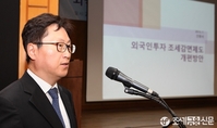 한국조세재정연구원이 주최한 '외국인투자에 대한 조세감면제도 개편방안에 관한 공청회'가 3일 오후 2시 서울 중구 명동 은행회관에서 개최된 가운데 박형수 원장이 개회사를 하고 있다. <사진=전한성 기자>(조세금융신문=김태효 기자)한국조세재정연구원은3일오후2시서울명동은행회관에서‘외국인투자에대한조세감면제도개편방안공청회’를개최했다.박형수한국조세재정연구원장은개회사를통해“외국인투자에대한조세감면제도가도입초기에는척박한국내경제환경에서외국인투자를유치하기위해광범위한분야에많은혜택을주고,그로인해실제외국인투자를유치하는데중요한역할을해온반면,우리경제가상당한수준의국제경쟁력
