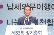 한국세무사회는30일서울여의도63빌딩에서제53회정기총회를개최했다. <사진=전한성 기자>(조세금융신문=김태효 기자)한국세무사회는30일서울여의도63빌딩에서제53회정기총회를개최해,2014회계연도회무보고·결산및2015회계연도사업계획·예산안을심의·의결했다.이번총회에는국회에서정갑윤국회부의장을비롯해정우택정무위원장,오제세·김광림·나성린·홍일표·김성태·강석훈·서영교국회의원,정부에서는제정부법제처장을비롯해주형환기획재정부1차관,정정순행정자치부지방제정세제실장,국세청최진구개인납세국장,김병근중소기업청중소기업정책국장등이참석해자리를빛냈다.또한