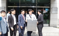 30일 오전 서울 서초구 한국세무사회관에서 선거관리위원회 직원이 용역들의 호위속에 개표가 진행되는 여의도 63빌딩으로 투표함을 나르고 있다. <사진=전한성 기자>(조세금융신문=김태효 기자)30일‘제53회한국세무사회정기총회’가열리는서울여의도63빌딩에서제29대한국세무사회장,윤리위원장,감사등임원선거에대한개표작업이오후1시부터진행되고있다.이번제29대세무사회장투표는지난18일서울지방세무사회를시작으로26일대전지방세무사회까지전국순회투표방식으로진행됐으며,30일제53회정기총회에서당선자가발표된다.비공개로진행된개표작업은각후보들까지개표장출입이통제된가운데,후보들이추천한