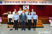 차두삼 인천본주세관장이16일세관대강당에서개청132주년을기념해관세행정에기여한유관업체및우수성과창출직원에대한포상을실시한 후 수상자들과기념촬영을 하고 있다. <사진제공=인천본부세관>(조세금융신문=김태효 기자)인천본부세관(세관장차두삼)은16일세관대강당에서개청132주년을기념해관세행정에기여한유관업체및우수성과창출직원에대한포상을실시했다고밝혔다.차두삼인천세관장은기념사에서“안팎으로어려운여건의연속이지만우리모두가힘과지혜를모으고새로운마음가짐으로책임감과소명의식을가지고각자의위치에서&nb