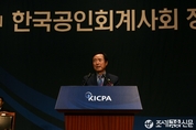 한국공인회계사회가17일서울여의도63컨벤션센터그랜드볼룸에서제61회정기총회를개최한 가운데,강성원 한국공인회계사회장이 개회사를 하고 있다. <사진제공=한국공인회계사회>(조세금융신문=김태효 기자)한국공인회계사회(회장강성원)는17일서울여의도63컨벤션센터그랜드볼룸에서제61회정기총회를개최해올해사업계획및비전과예산안등을결정했다.강성원회계사회장은개회사를통해“현재국고보조사업자에대한외부감사의무화와외부감사강화에관한법률개정안이진행중에있는데,이러한여러가지움직임에대해적극적으로대처해나가고있다”고평가했다.이어그는