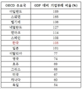 OECD 주요국 GDP대비 기업부채 현황 <자료제공=국회예산정책처>(조세금융신문=김태효 기자)우리나라의국내총생산(GDP)대비기업부채비율이경제협력개발기구(OECD)주요국에서7번째로높은것으로나타났다.20일국회예산정책처가펴낸‘기업부채의현황과국제비교’보고서에따르면,지난해2분기한국의GDP대비기업부채비율은105%로OECD주요국15개국가운데7번째를차지했다.이는맥킨지글로벌연구소의자료를바탕으로작성됐으며연금부채는제외됐다.GDP대비기업부채비율이가장높은국가는아일랜드(189%)로조사됐고,스웨덴(165%)과벨기에(136%)가뒤를&nbs
