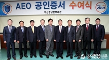 <사진제공=부산경남본부세관>(조세금융신문=김태효 기자)부산경남본부세관(세관장정재열)은13일세관대회의실에서최근성실무역업체(AEO)로공인된업체에대한공인증서수여식을개최했다.이날공인증서를수여받은업체는광진윈텍(주),유일고무(주),제이아이유압(주),영원관세법인,서도상선(주),(주)청강등6개사가신규공인받았고,동북관세법인,창거합동관세사무소,대륙항공해운(주)등3개사가재공인받았다.부산세관관계자는“이들업체들은엄격한서류심사와현장실사를거쳐,AEO심의위원회의심의결정에의해공인업체로선정됐다”고전했다.이번에성실무역업체로공인받은이들업체는&nb