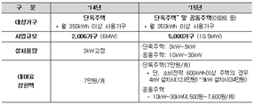 (조세금융신문)올해부터태양광대여사업이아파트(공동주택)로확대하고,사업규모도5천가구규모로대폭확대된다.산업통상자원부는에너지신산업의일환으로작년부터시작한태양광대여사업을확산하기위해이러한내용의‘2015년도태양광대여사업계획’을11일공고한다고밝혔다.지난해부터에너지신산업으로본격추진한태양광대여사업은그간정부의보조사업위주로추진해온태양광설비보급을발상의전환을통해별도의예산없이도신재생에너지보급확대가가능하도록한시장기반의비즈니스모델이다.<자료제공=산업통상자원부>정부는작년2006가구가이&nbs