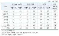 (조세금융신문)정부학자금대출이4년만에3배가까운규모로급증했다.대학교육연구소는한국장학재단에'정부학자금대출현황'에대한정보공개를청구한결과,전체대출액이2010년말3조7천억원에서2014년말10조7천억원을기록해2.9배로늘었다고6일밝혔다.대학교육연구소는2009년2학기부터한국장학재단이직접대출하는방식으로전환되면서이자율이낮아졌고,2010년1학기부터취업후소득이생기면이자와원금을상환하는든든학자금이도입되면서대출이급증한것으로분석했다.실제일반상환학자금은대출액이2010