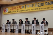 홍지만 새누리당 의원이 3일 여의도 국회의원회관에서 열린 '구글세 논쟁과 인터넷 주권의 미래' 토론회에서 인사말을 하고 있다. <사진=김태효 기자>(조세금융신문)‘동일범주동일대우’원칙에따라국내외기업의규제형평성을이루기위해구글세도입이시급하다는주장이 제기됐다.3일여의도국회의원회관에서홍지만새누리당의원주최로열린'구글세논쟁과인터넷주권의미래'토론회에서는최근이슈가되고있는구글세와인터넷산업발전을위한다양한의견이 나와 주목을 받았다.홍의원은인사말에서“국제표준과동떨어진각종규제는결국국내ICT산업의지속적인성장에걸림돌이될&nbs