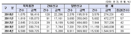 (조세금융신문)작년해외직구가또다시사상최대규모를기록했다.관세청은지난해에도해외직구물품수입이1553만건에15억4천만불로나타나사상최대규모를기록했다고23일밝혔다.다만,지난2011년최고57%까지빠르게증가하던추세는2012년이후점점완화되어지난해에는39%의증가수준을보였다.전자상거래물품 신고방법별 통관현황 <자료제공=관세청>국가별로는미국(73%)에서가장많이수입됐고,중국(11%),독일(5%),홍콩(4%),일본·영국(각2%),프랑스·뉴질랜드(각1%)가그뒤를이었다.또2010년에19