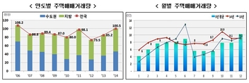 (조세금융신문)작년전국주택매매거래량이100만건을돌파하며8년만에최대치를기록한것으로나타났다.국토교통부는2014년연간총주택매매거래량이100만5173건으로전년보다18%증가한것으로집계됐다고11일밝혔다.이는2006년(108만2천건)이후가장많은거래량으로,연간거래량이100만건을돌파한것은2006년이후8년만이다.국토부관계자는“지난해'7·24대책','9·1대책'등정부가부동산대책을잇달아발표하면서시장에기대감이확산하고매매가격이회복세를보인영향으로&nbs