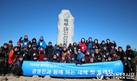 <사진제공=한국시티은행>(조세금융신문)박진회한국씨티은행장(첫번째줄우측에서일곱번째)을비롯한350여명의 임직원들이지난10일강원도평창군에위치한선자령을함께올랐다.한국씨티은행은매년1월임직원들이함께산행을하며새해각오를다지고한해를시작하고있으며,올해는고객만족을통한민원없는은행달성을위한의지를다지는시간을가졌다.
