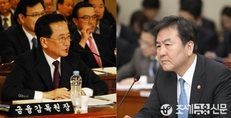 국정감사에서 '사퇴의사가 전혀 없다'고 밝힌 최수현 금융감독원장(좌)과 신제윤 금융위원장(우).(조세금융신문) 신제윤 금융위원장에 이어 최수현 금융감독원장도 KB사태로 물러날 생각이 전혀 없다고 밝혔다. 16일 금감원에서 열린 금융감독원 국정감사에서 “KB 사태를 책임지고 물러날 생각이 있나”라는 새정치민주연합 김영환 의원의 질문에 최수현 금융감독원장은 “그럴 생각 없다”고 답했다. 이어 김 의원이 "책임은 통감하는데 물러날 생각은 없다고 이해하면 되나"라고 질문하자 최수현 금감원장은 "법과 원칙에 따라 감독원장 직을 수행했다”며 사퇴 의사가 전혀 없음을 강조했다. 신제윤 금융위원장 역시 15일 금융위원회 국정감사에서 “임영록 회장에 대한 중징계 건은 금융위에서 할 수 있는 유일한 권한이며 법과 원칙에 따라 이뤄진 것이다”라며 “사퇴할 생각이 없다”고 밝혔다. 금융당국의 두 수장이 사퇴하지 않겠다는 뜻을 분명히 한 것이다. 한편, 최 금감원장은 임영록 전 KB금융지주회장에 대한 검찰 고발 취하 의향을 묻는 말에 대해서는 "검찰 고발은 별개의 문제다. 취하하지 않겠다"고 답했다.