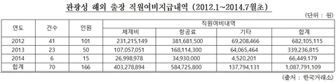 (조세금융신문) 한국거래소의 독점적 지위에 따른 방만경영이 도를 지나친 것으로 나타났다.새누리당 신동우 의원이 국정감사를 앞두고 한국거래소로부터 제출받은 ‘거래소 해외 출장 현황’을 보면, 2012년부터 2년 7개월동안 직원 정원의 50%가 넘는 400여명이 151건의 해외출장을 다녀왔고, 일인당 5백만원이 넘는 21억 8천만원을 여비로 지급받은 것으로 밝혀졌다.이 중 총회, 이사회, 심사 등 업무상 분명한 것을 제외한 단순회의 참가, 현장 조사 등 해외출장 목적이 불분명한 건이 70건에, 166명에게 지급된 여비만도 10억 8,000만원에 달한 것으로 나타났다.특히 플로리다(포트로더메일)에서 개최되는 컨퍼런스 참가를 이유로 5박7일간 일정으로 간 해외출장은 처음부터 해외관광을 목적으로 떠난 것이라는 지적이다.신 의원실 조사에 따르면, 5박 7일동안 첫날은 자유시간, 이틀째는 플로리다 근처인 마이애미에서 크루즈탑승, 악어쇼 관광, 삼일째에는 숙소에서 왕복7시간이상 걸리는 미국 최남단 휴양섬 키웨스트 여행, 마지막 날은 자유시간 등 100% 관광만 하다가 돌아온 것으로 밝혀졌다.신 의원은 “단순히 참가만 하는 각종 세미나, 컨퍼런스 및 현장조사 등의 명목으로