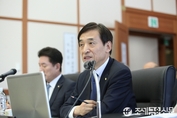7일 서울 남대문로 한국은행에서 열린 한국은행 국정감사에서 이주열 총재가 의원들의 질의에 답하고 있다.(조세금융신문) 올해 우리나라 경제성장률이 3% 중반은 될 것이라는 의견이 나왔다. 7일 서울 중구 남대문로 한국은행 본점에서 열린 한국은행 국정감사에서 성장률 전망치를 묻는 이한구 새누리당 의원 질문에 이주열 한은 총재는 "성장률 전망치를 3%대 후반으로 봤는데 낮춰도 3%대 중반은 될 것으로 보고있다"고 답했다. 이에 오는 15일 수정 발표될 예정인 경제전망에서 올해 성장률이 하향 조정될 가능성이 높아졌다. 한은은 지난 7월에도 올해 성장률 전망치를 기존 4.0%에서 3.8%로 낮춘 바 있다. 한편, 이 총재는 새누리당 이만우 의원이 질문한 기준금리 인하 필요성에 대해 "원·엔 환율 하락을 금리로 대응하는 것은 신중해야 한다"며 통화정책에 대해서는 원칙적인 입장을 반복했다.