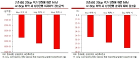 (조세금융신문)지난 8월 기준금리 인하에 이어 10~11월 중 또 한 차례 금리 인하가 단행된다면 7개 상장은행의 이자이익이 최대 6,459억원 감소할 것으로 분석됐다. 기준금리 인하는 수익성 지표인 NIM(Net Interest Margin)을 하락시켜 은행 수익에 부정적인 영향을 미치기 때문이다.유진투자증권은 23일 정부정책의 변화가 은행산업에 미치는 주요 내용으로 △기준금리 인하에 따른 영향 △부동산시장 규제완화에 따른 영향 △예대율 규제 완화에 따른 영향 △배당소득 증대세제 및 복합점포 활성화에 따른 영향 등을 꼽으며 이 같이 전망했다.유진투자증권은 10~11월 중 기준금리 25bp 추가 인하가 단행된다면 NIM은 4bp~6bp하락과 이자이익은 4,306억원~6,459억원 감소할 것이라 예상했다. 이는 2014년 순이익 대비 5.6%~8.0% 수준이다. 김인 연구원은 “8월 기준금리 25bp 인하에 따라 은행들의 NIM은 2~4bp 하락을 예상”하며 “이에 따라 7개 상장은행 이자이익 감소는 2,153억원~4,306억원을 예상한다”고 전했다. 또한 이는 2014년 7개 상장은행 순이익 8.1조원 대비 2.7%~5.3% 수준이다.정부의 부동산시장 활성화
