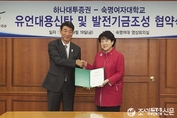 (조세금융신문)하나대투증권이 지난 19일 오후 숙명여자대학교와 유언대용신탁 및 발전기금 조성을 위한 업무 협약을 숙명여대에서 체결했다고 22일 밝혔다.‘유언대용신탁’은 예탁자가 생존하는 동안 자산을 고객의 뜻에 따라 관리를 하고 사망 시에는 신탁계약에서 정한 바에 따라 재산을 특정 지정자에게 승계하는 상품이다. 하나대투증권은 신탁의 운용뿐만 아니라 유언장의 작성과 보관, 집행도 담당해 숙명여자대학교에 기부하고자 하는 고객의 유산을 공정하고 안전하게 집행하는 역할을 한다.숙명여자대학교 발전기금은 ‘하나대투증권 기부서비스’를 통해 형성된다. ‘하나대투 기부서비스’는 2010년부터 도입한 금융을 통한 사회공헌 서비스로 고객의 금융수수료 일부를 고객이 지정하는 공익기관에 해당 고객의 이름으로 기부해 주는 서비스다. 후원을 원하는 고객은 계좌 개설 시 기부신청 절차만 거치면 추가적인 비용 없이도 숙명여자대학교에 기부할 수 있으며 연말정산 시 소득공제 혜택도 받을 수 있다.장승철 하나대투증권 사장은 “최근 많은 투자자들에게 기부문화가 정착되고 있다. 고객은 기부서비스를 통해 투자에 대한 기대수익과 더불어 사회적 만족까지 얻을 수 있다”며 “앞으로도 사회에 기여하고 고객